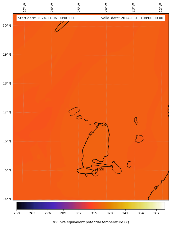 - Equivalent Potential Temperature (K)