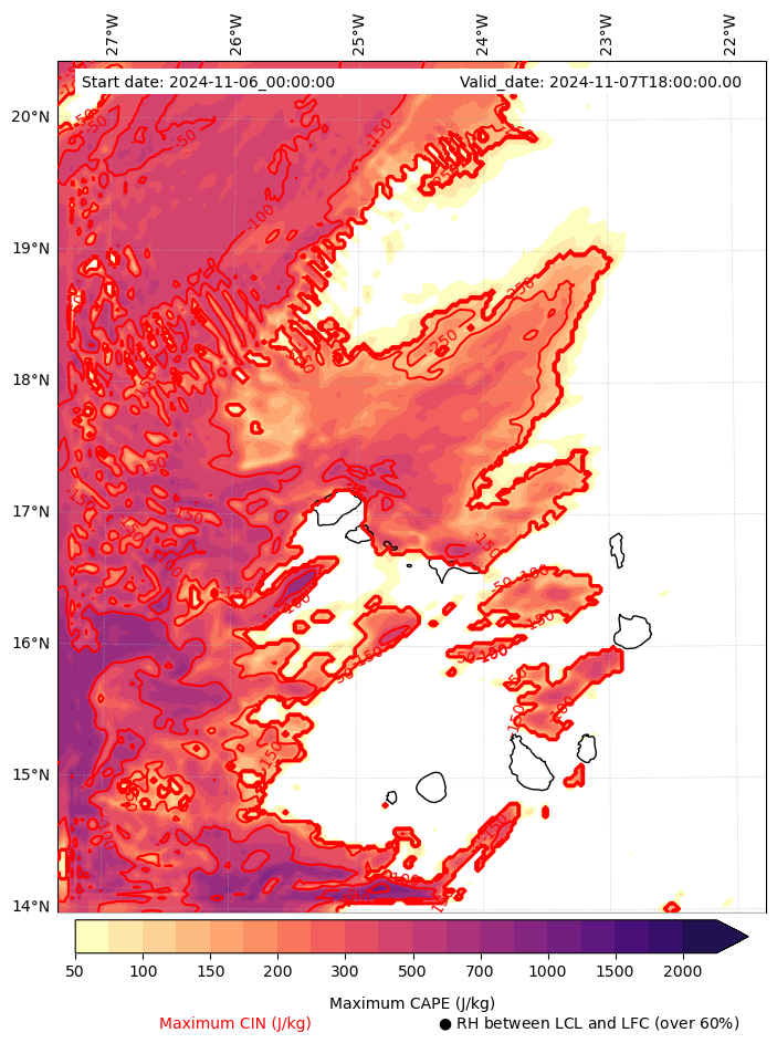 • Maximum CAPE (J/Kg)