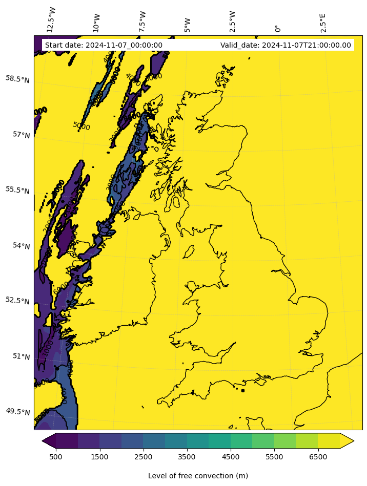 - Level of free convection (m)