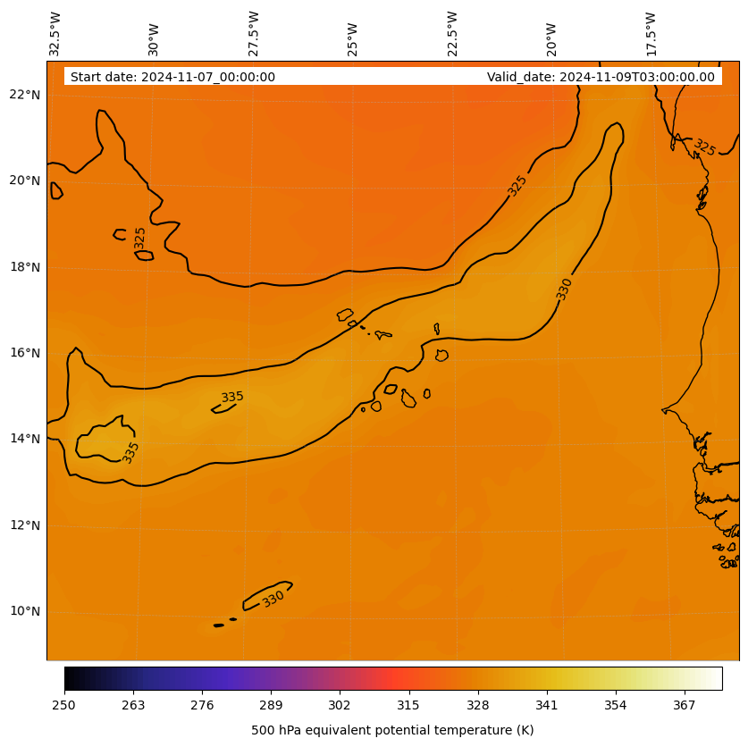 - Equivalent Potential Temperature (K)