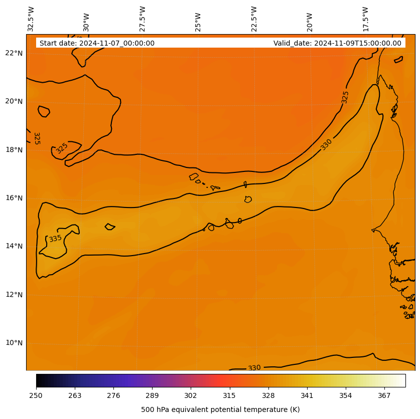 - Equivalent Potential Temperature (K)