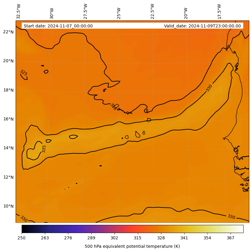 - Equivalent Potential Temperature (K)