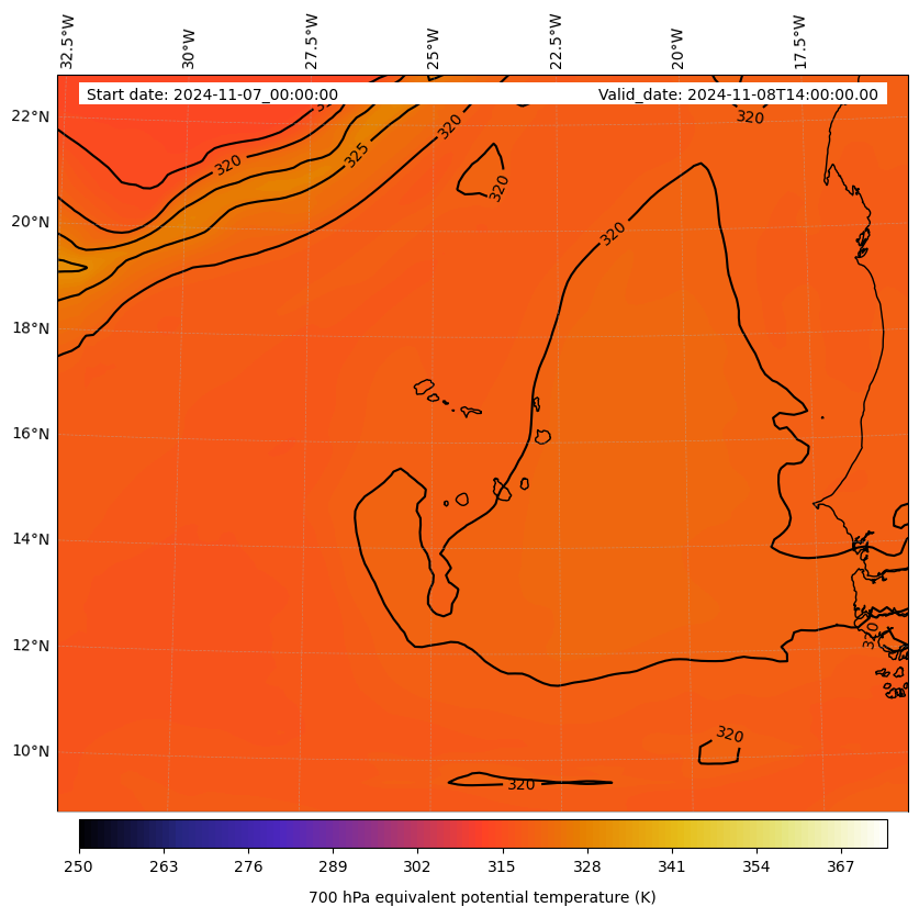 - Equivalent Potential Temperature (K)