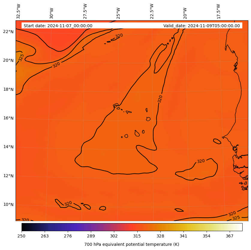 - Equivalent Potential Temperature (K)