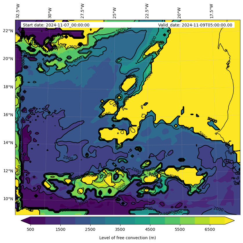 - Level of free convection (m)