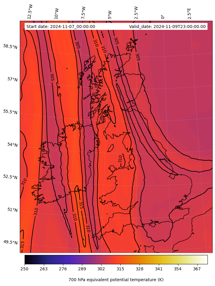 - Equivalent Potential Temperature (K)