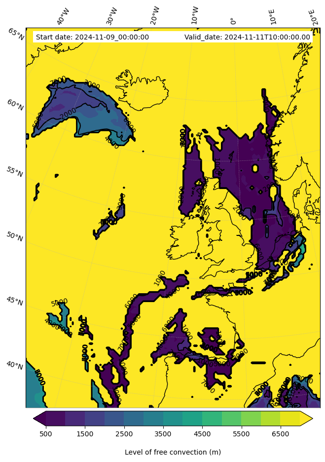 - Level of free convection (m)