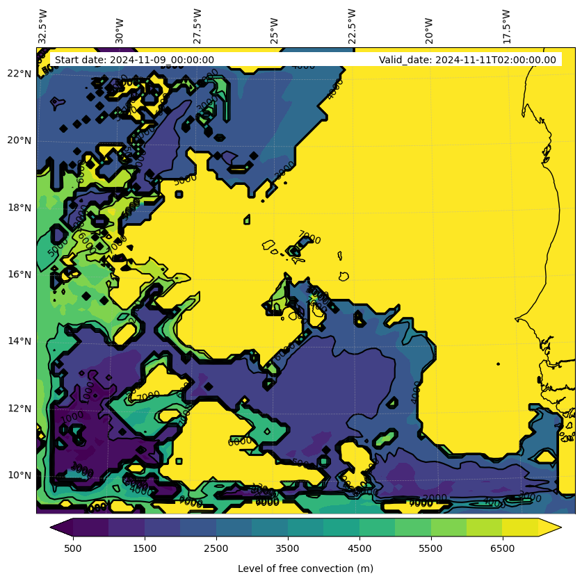 - Level of free convection (m)