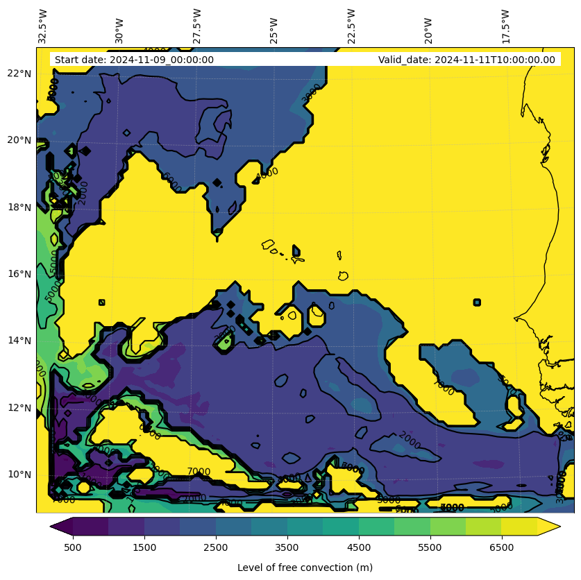 - Level of free convection (m)