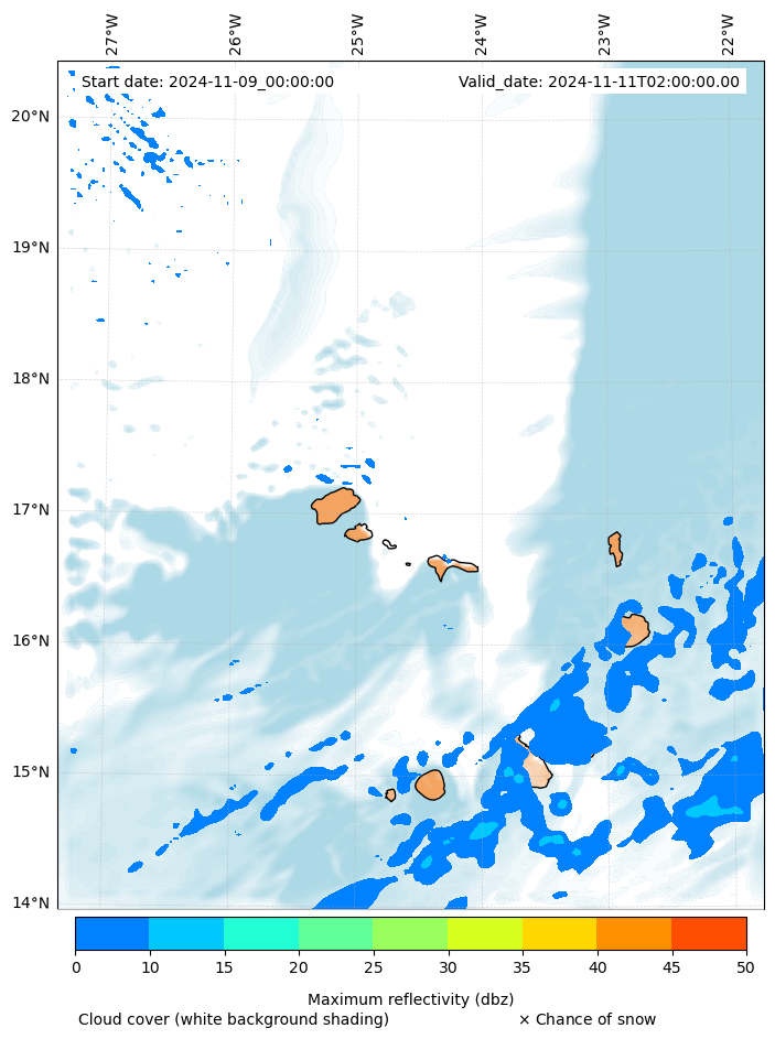 - Snow mixing ratio (g kg¯¹)