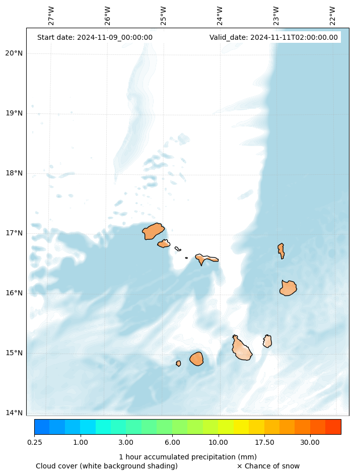 - Snow mixing ratio (g kg¯¹)