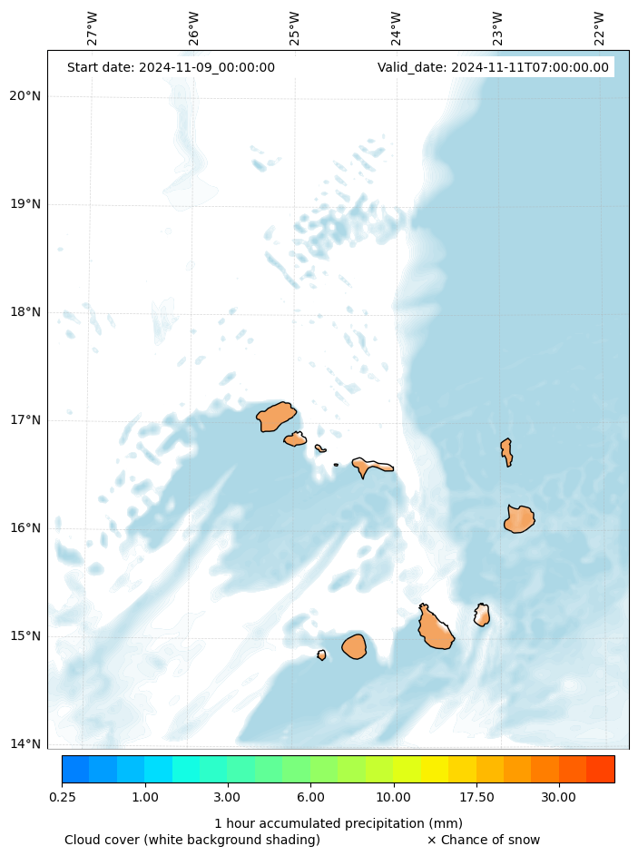 - Snow mixing ratio (g kg¯¹)