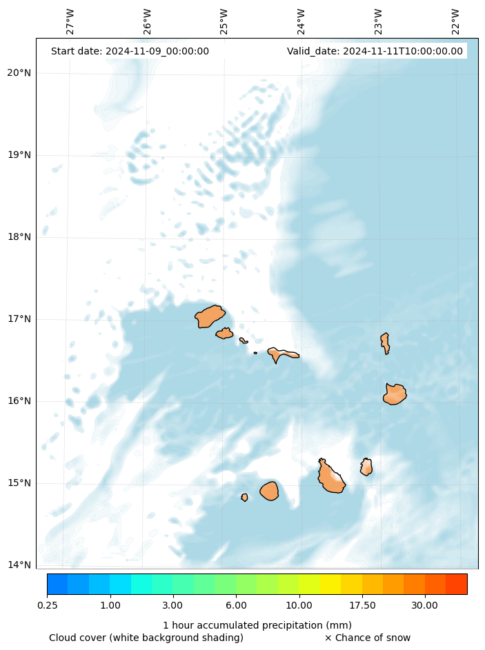 - Snow mixing ratio (g kg¯¹)
