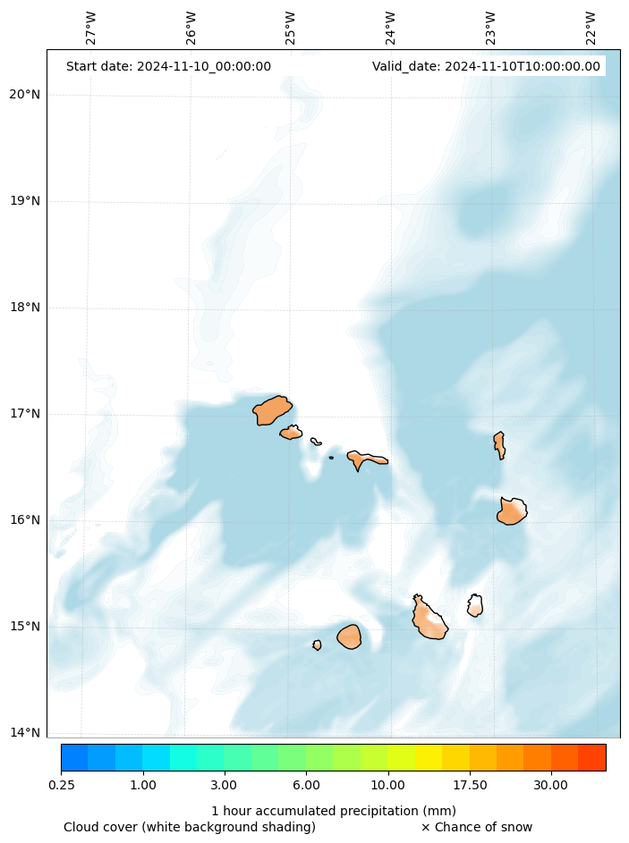 - Snow mixing ratio (g kg¯¹)