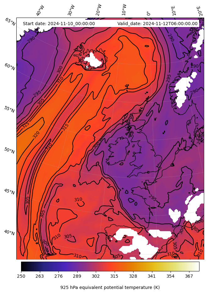 - Equivalent Potential Temperature (K)