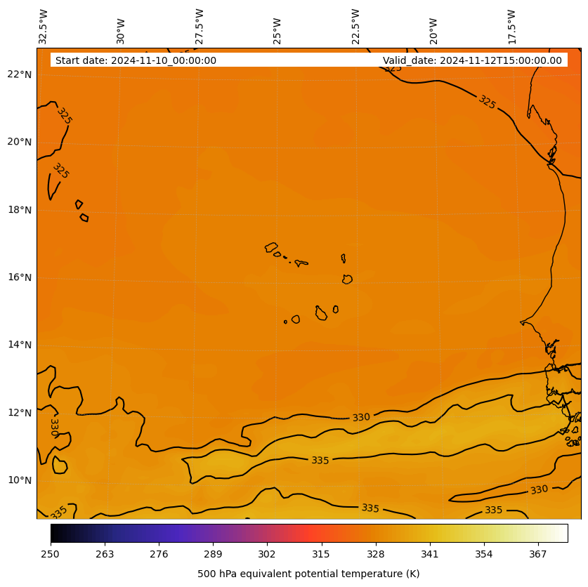 - Equivalent Potential Temperature (K)