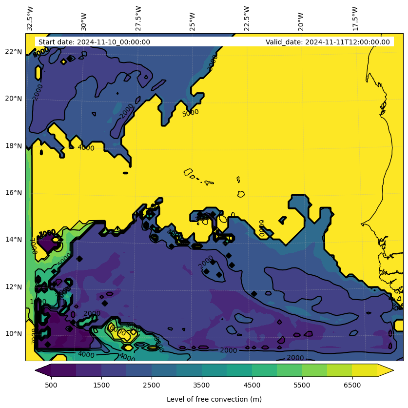 - Level of free convection (m)