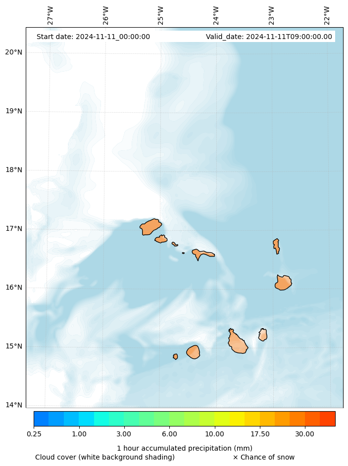 - Snow mixing ratio (g kg¯¹)