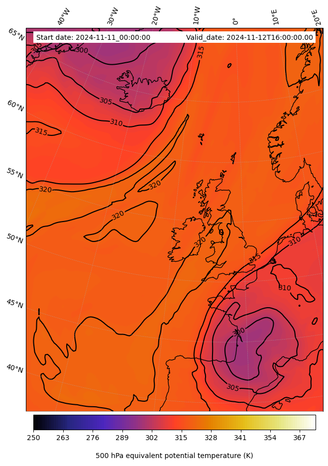 - Equivalent Potential Temperature (K)