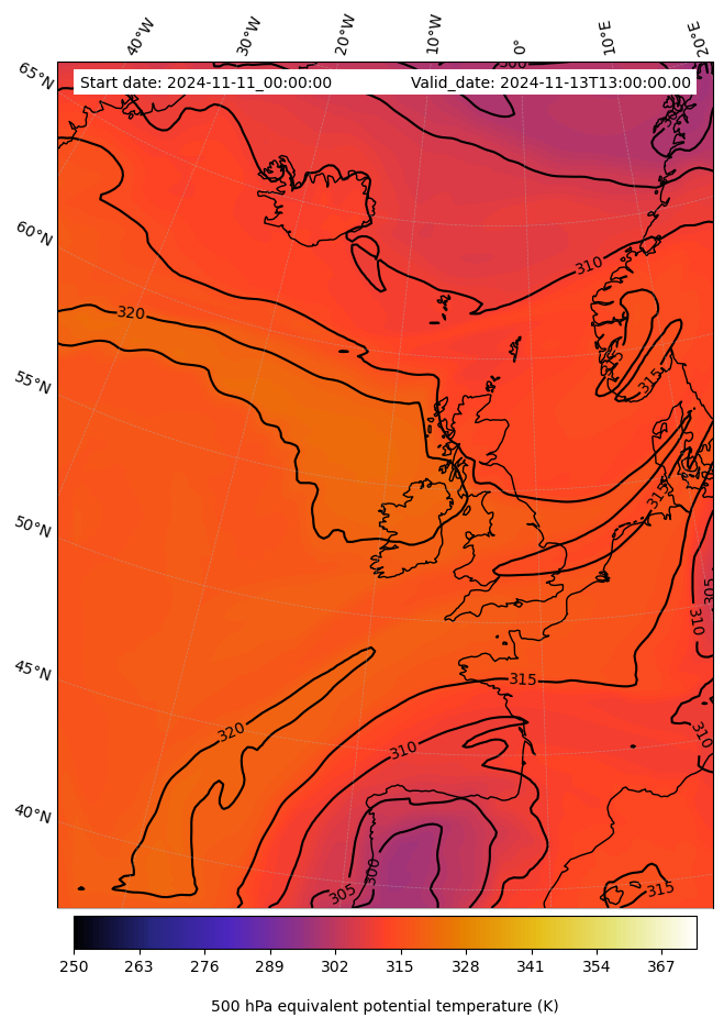 - Equivalent Potential Temperature (K)