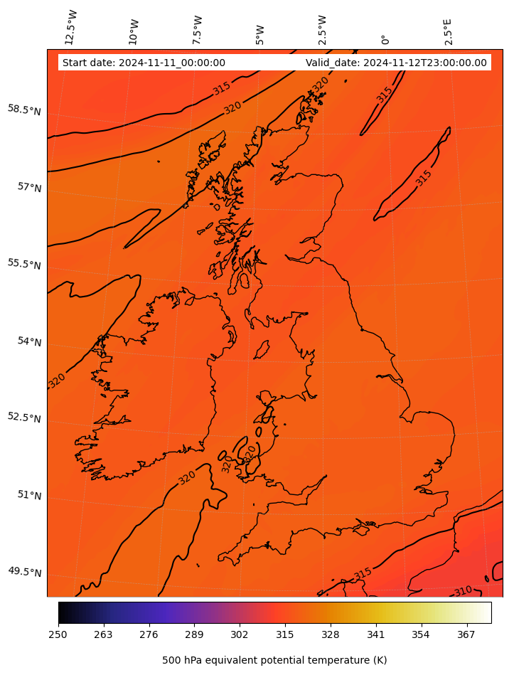 - Equivalent Potential Temperature (K)
