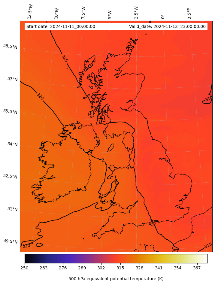 - Equivalent Potential Temperature (K)