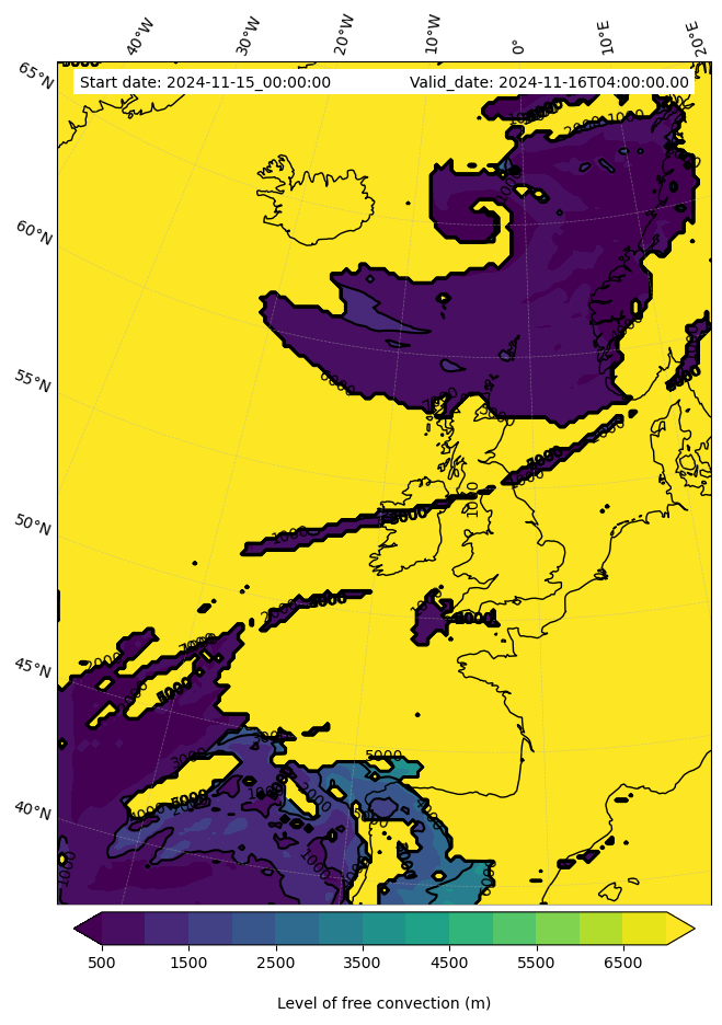 - Level of free convection (m)