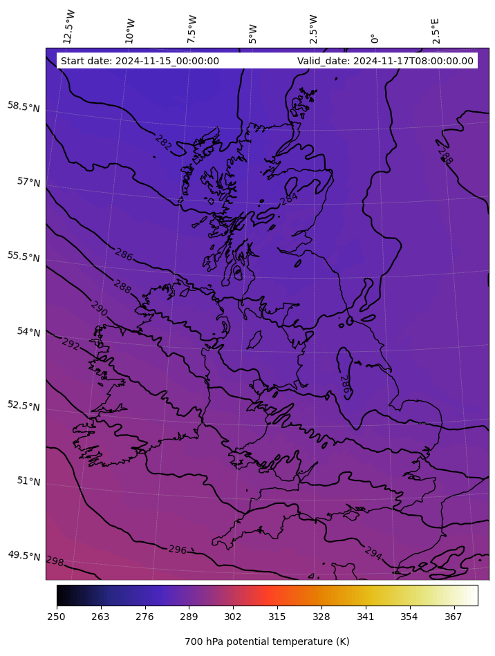 - Equivalent Potential Temperature (K)