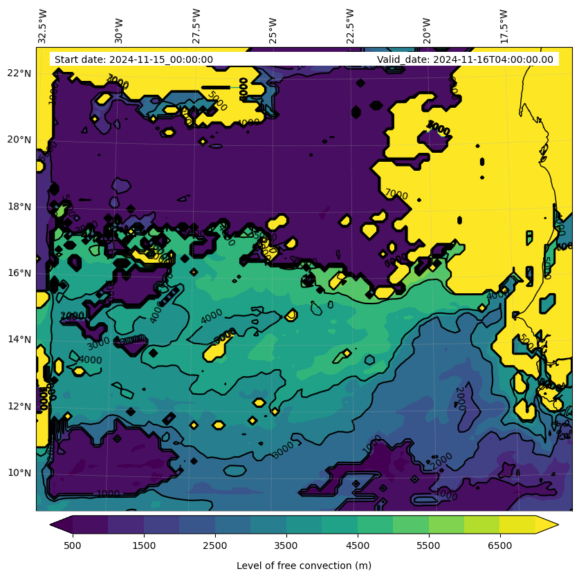 - Level of free convection (m)