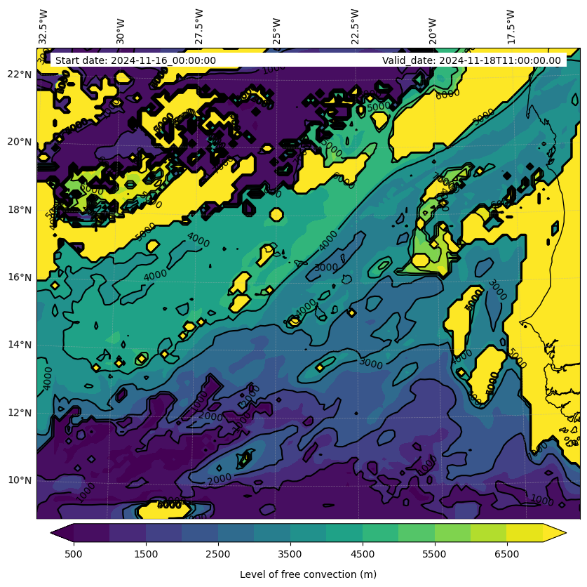 - Level of free convection (m)