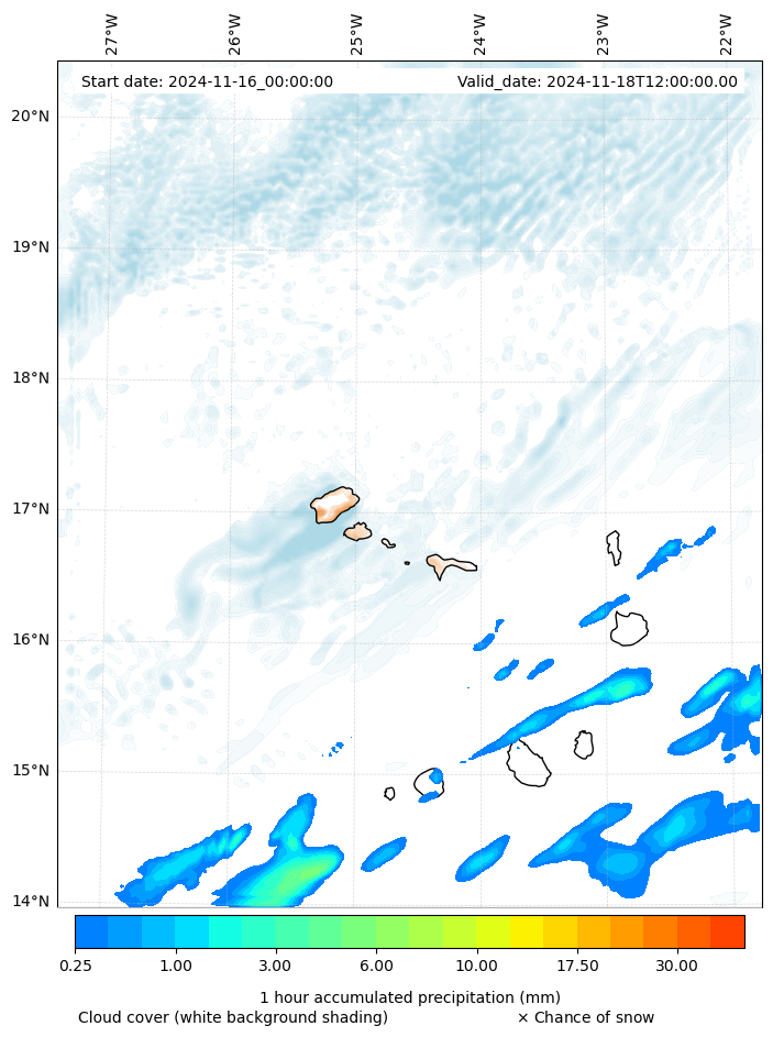 - Snow mixing ratio (g kg¯¹)