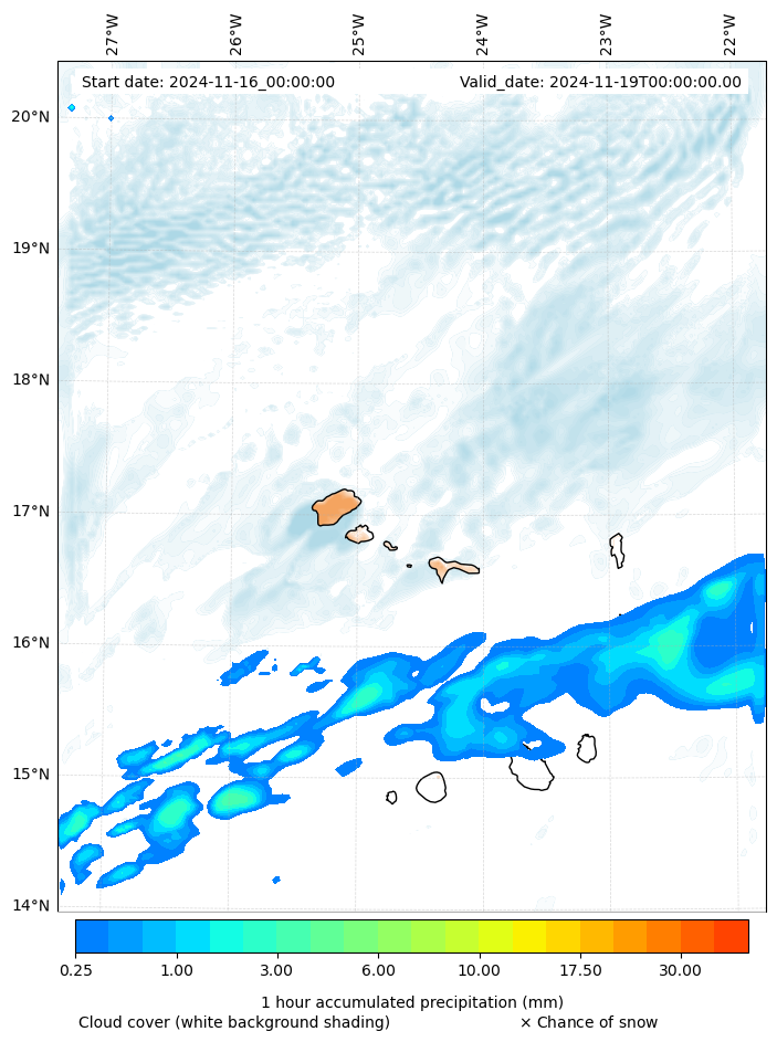 - Snow mixing ratio (g kg¯¹)