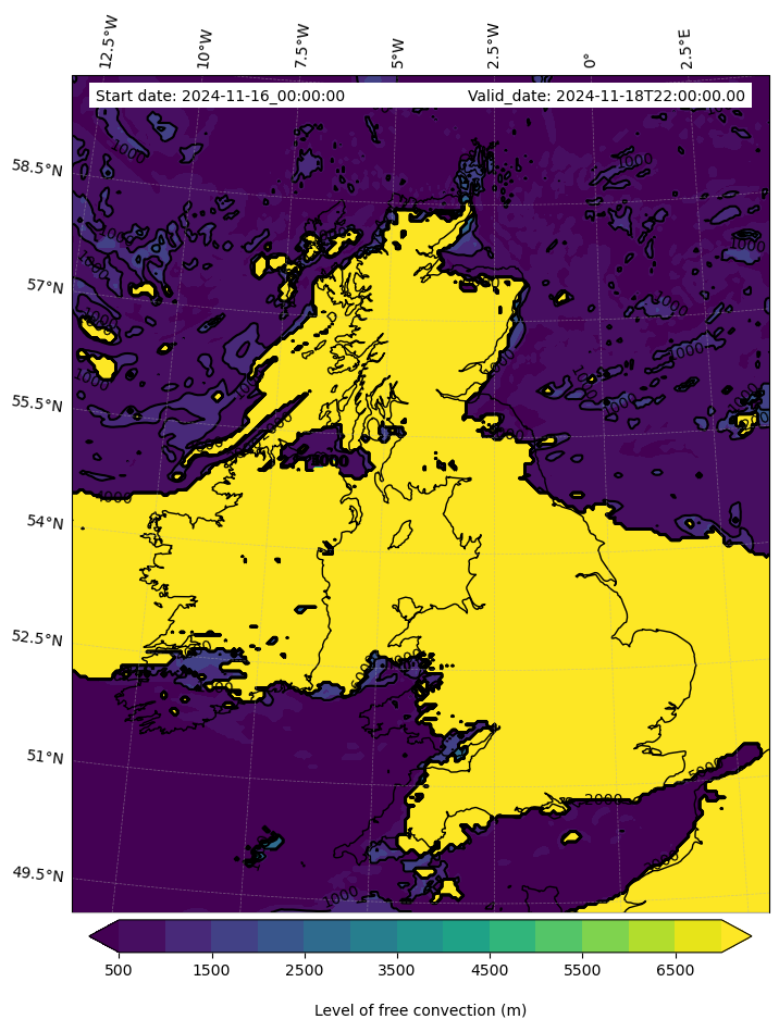 - Level of free convection (m)