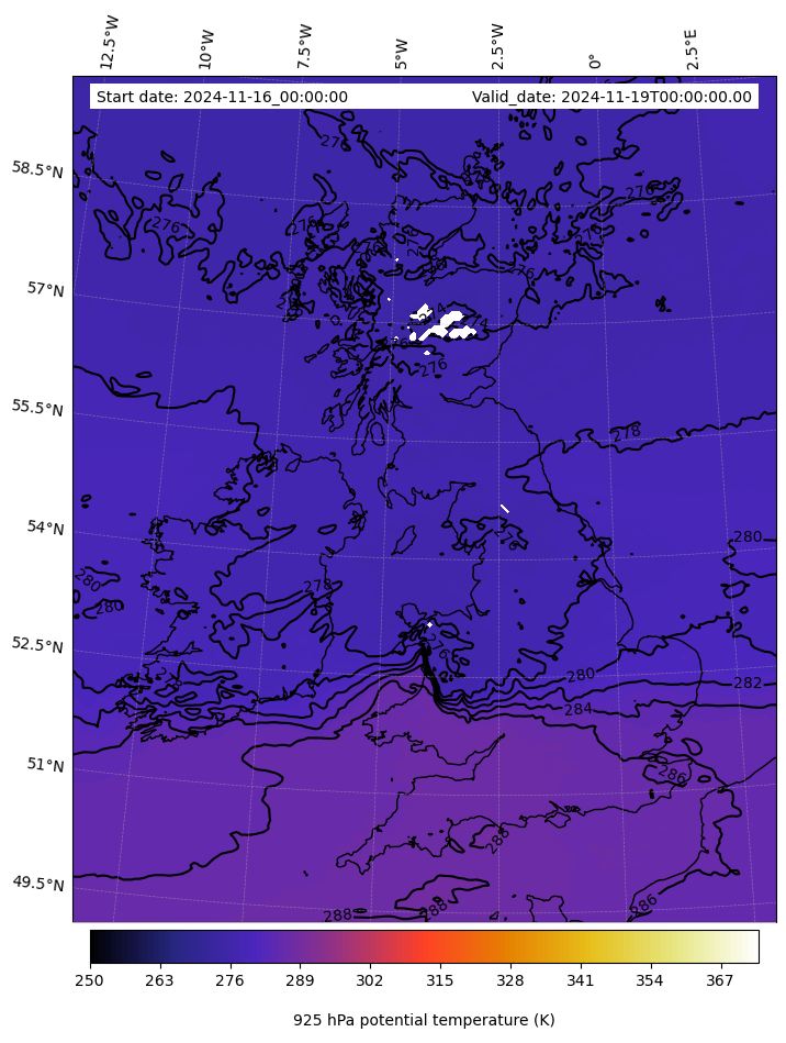 - Equivalent Potential Temperature (K)