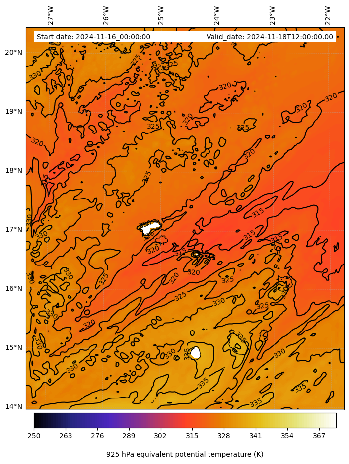 - Equivalent Potential Temperature (K)