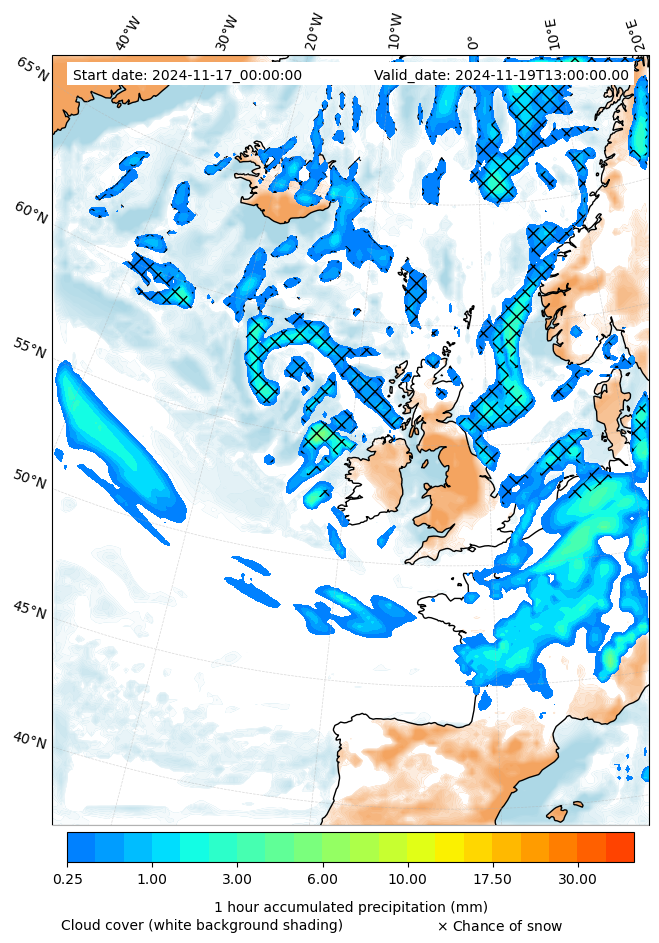 - Snow mixing ratio (g kg¯¹)
