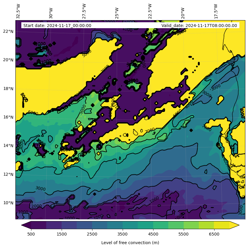 - Level of free convection (m)