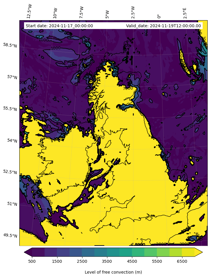 - Level of free convection (m)