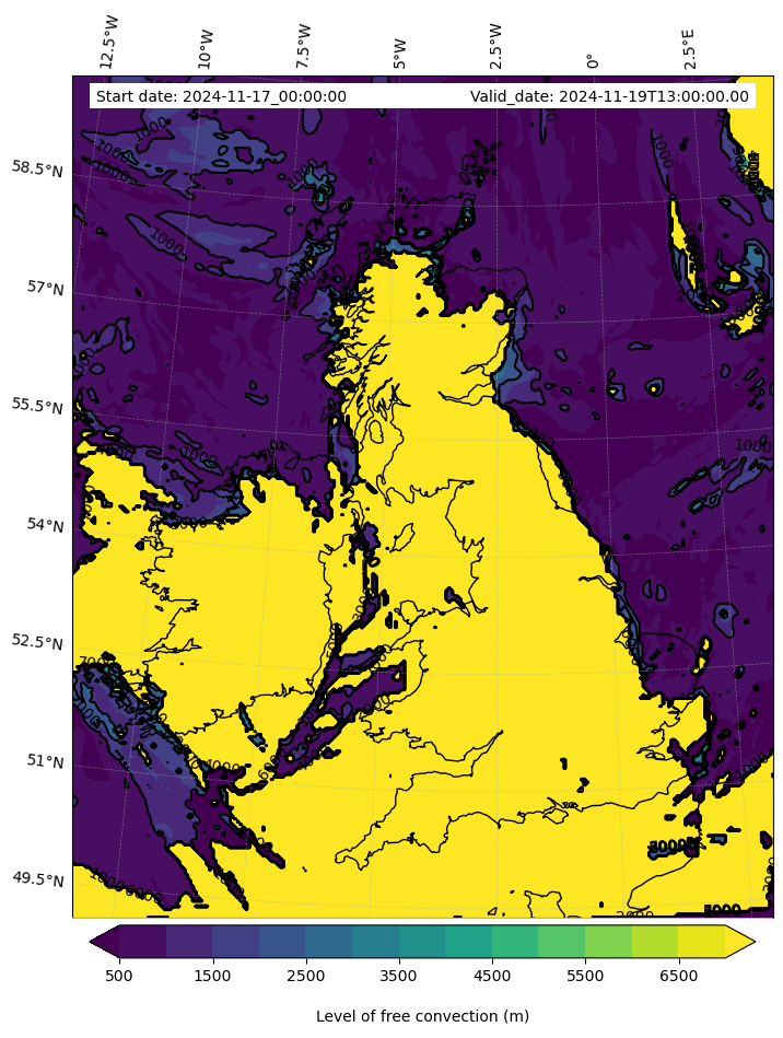 - Level of free convection (m)
