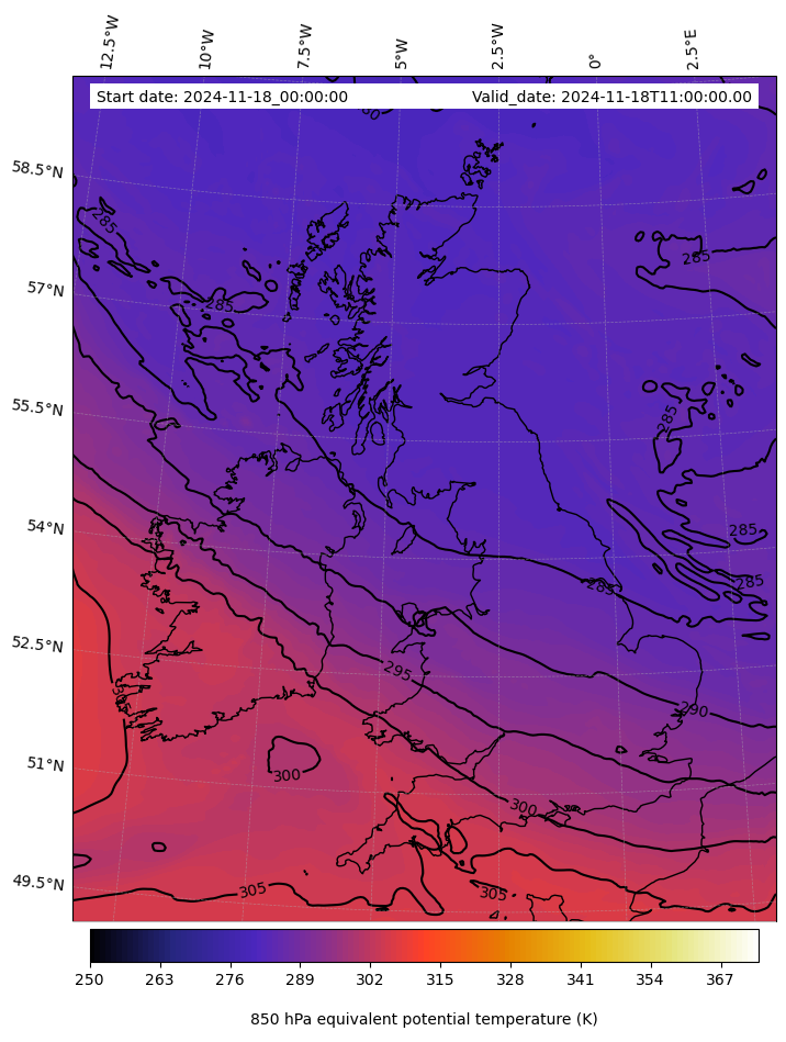 - Equivalent Potential Temperature (K)