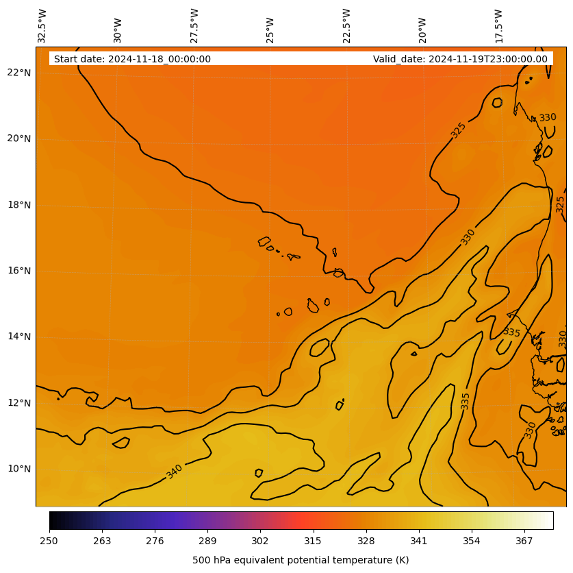 - Equivalent Potential Temperature (K)