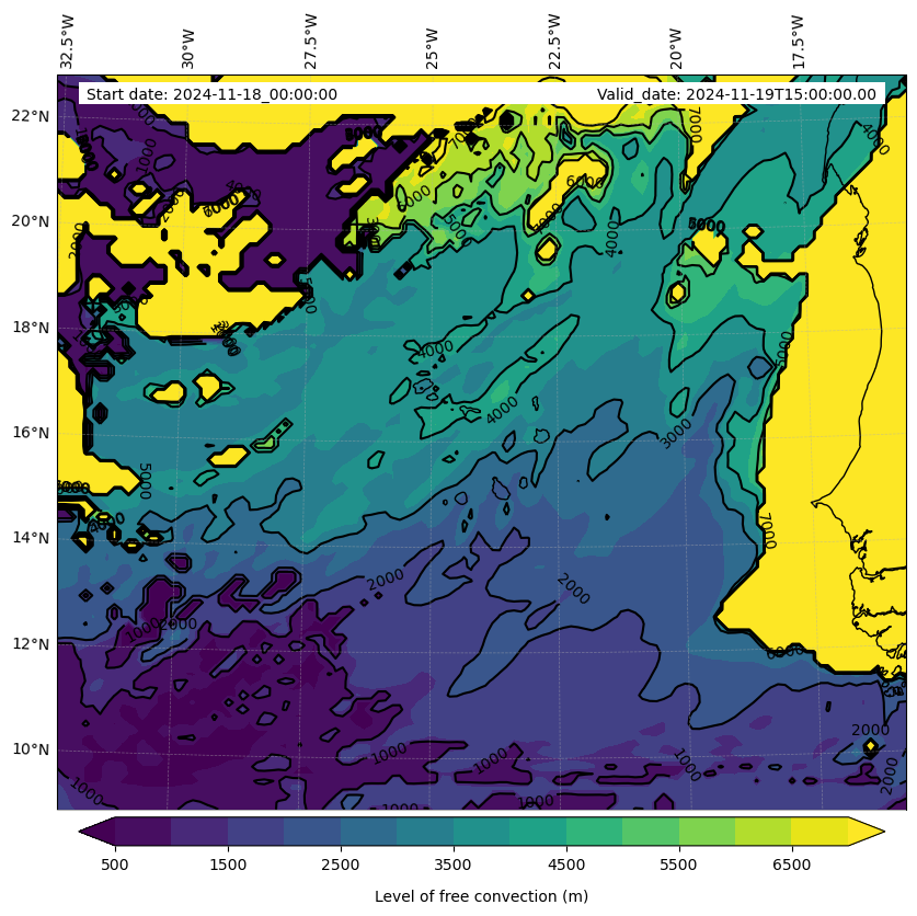 - Level of free convection (m)