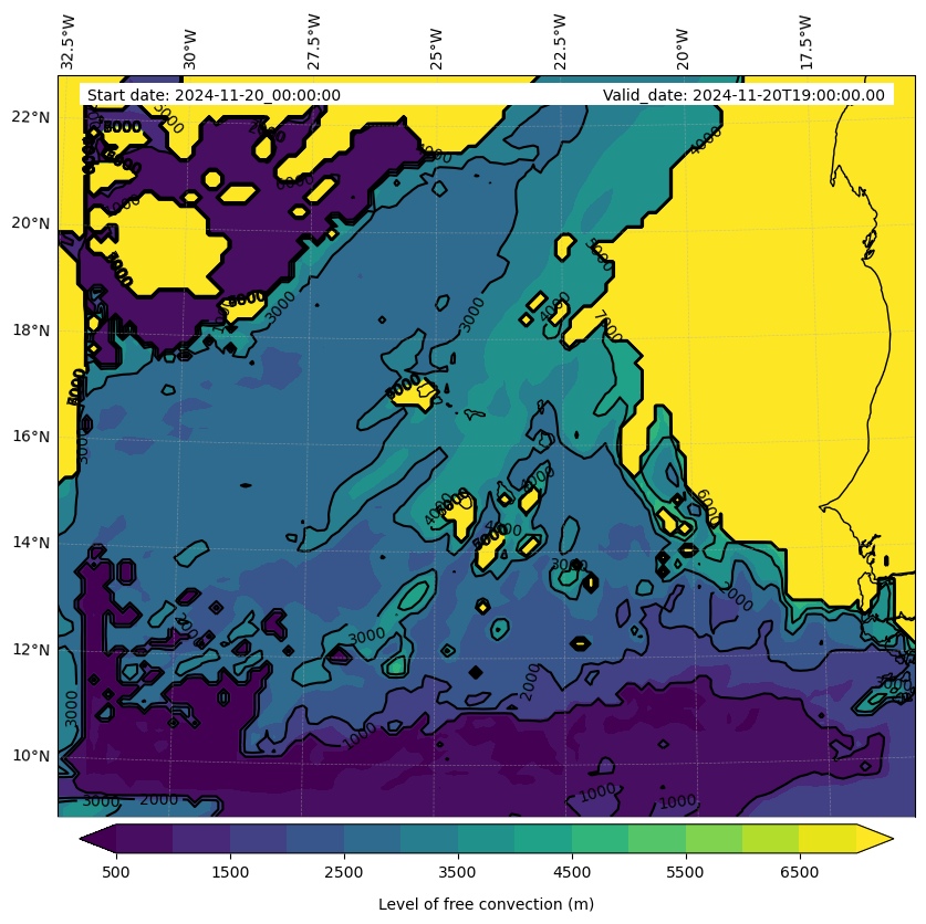 - Level of free convection (m)