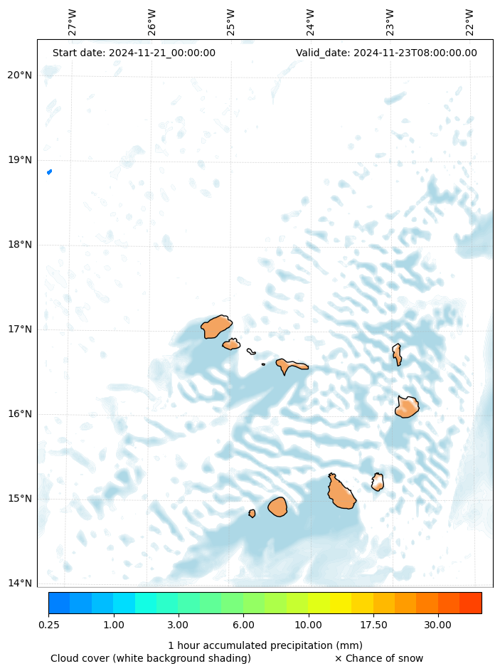 - Snow mixing ratio (g kg¯¹)
