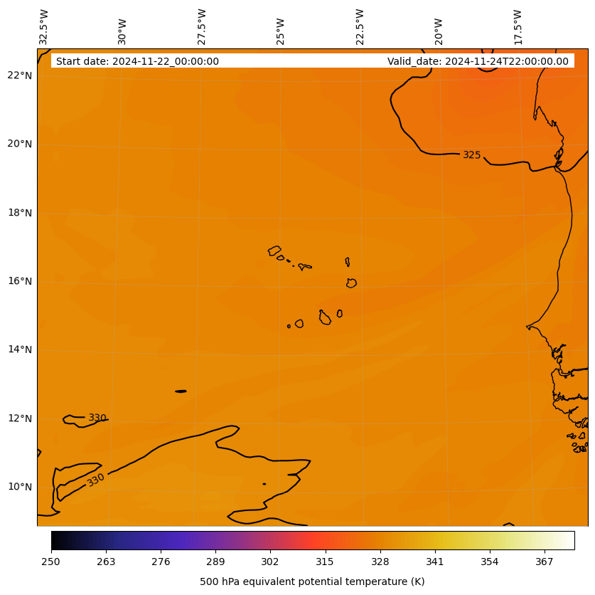 - Equivalent Potential Temperature (K)