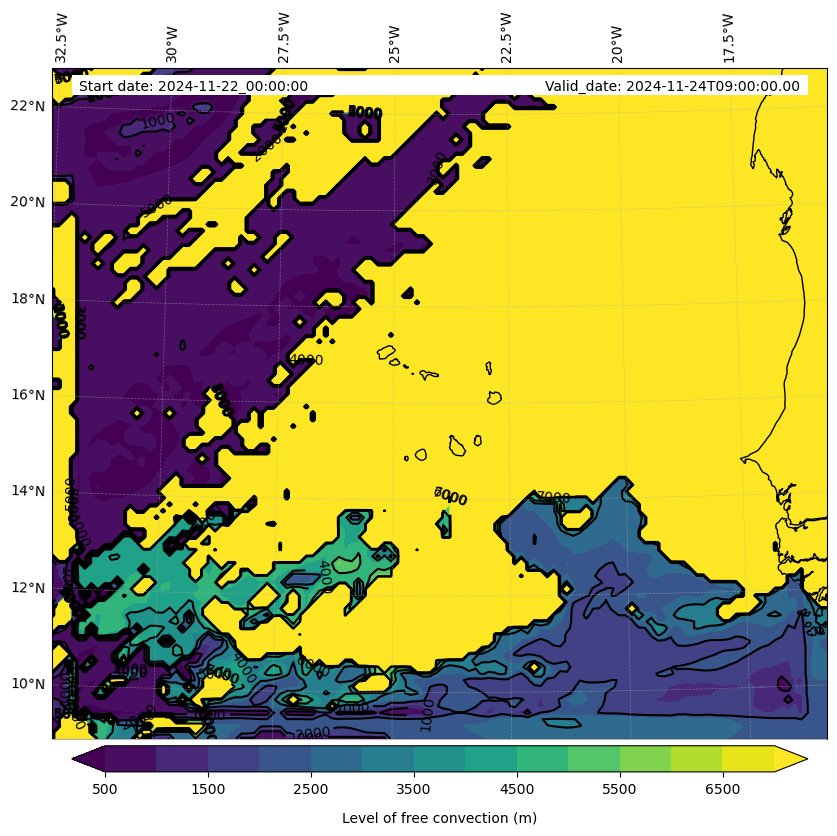 - Level of free convection (m)