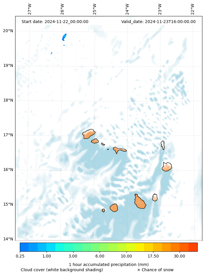 - Snow mixing ratio (g kg¯¹)