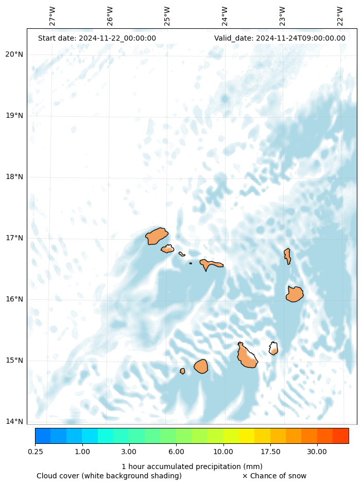 - Snow mixing ratio (g kg¯¹)