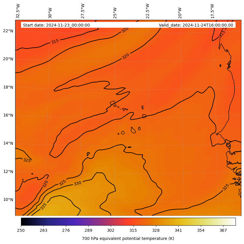 - Equivalent Potential Temperature (K)