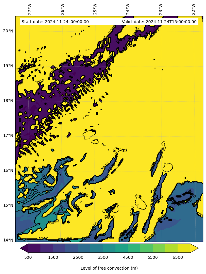 - Level of free convection (m)